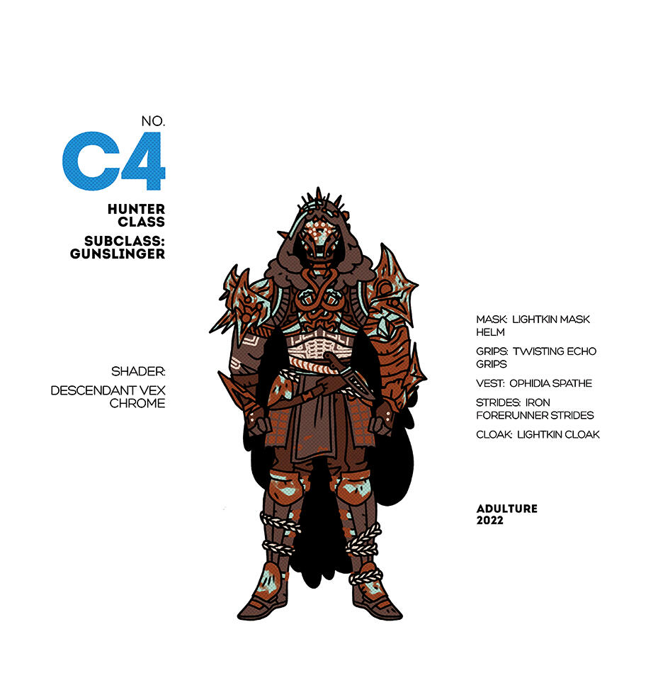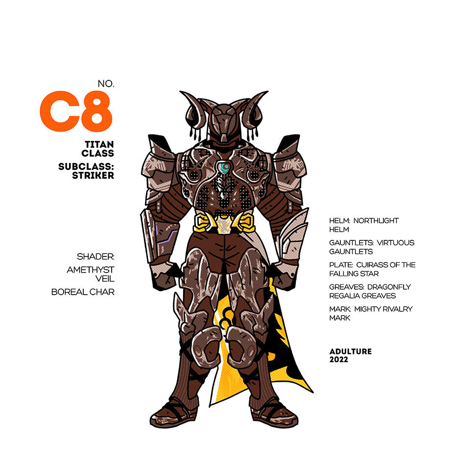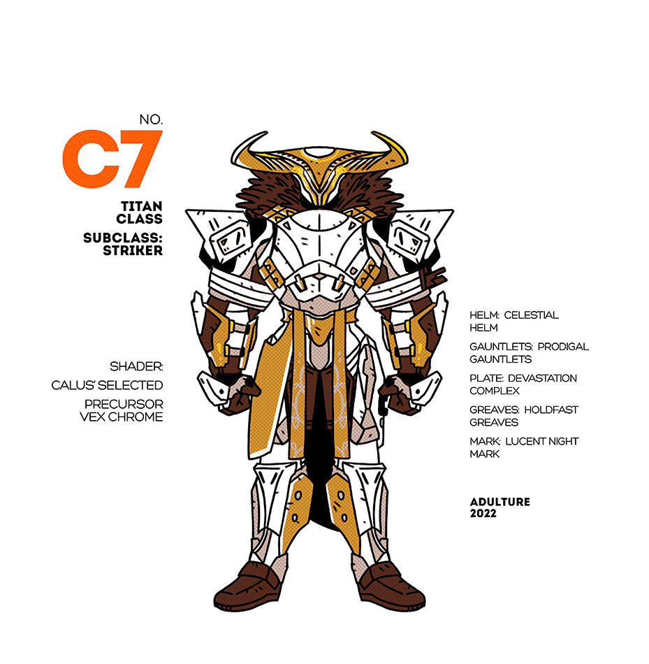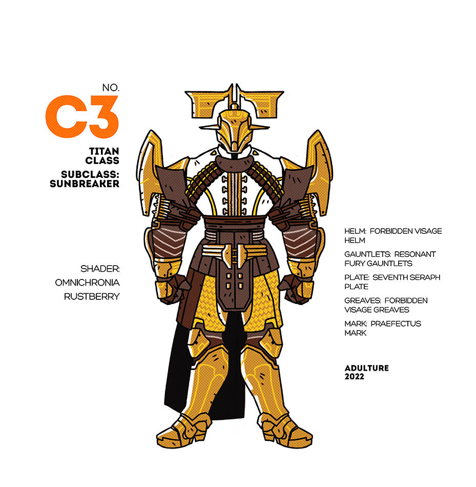 While I do have a library of assets to use to piece these drawings together, there are still a lot of armor pieces I have not drawn. With every piece of armor I have to draw, there will be a 10 USD fee for each piece of armor. So if you have a guardian with 5 pieces of armor I have not drawn yet, your commission will be 95 USD (45 USD + 50 USD). Whereas if you have a guardian with 2 pieces of armor I have not drawn yet, your commission will be 65 USD (45 USD + 20 USD).